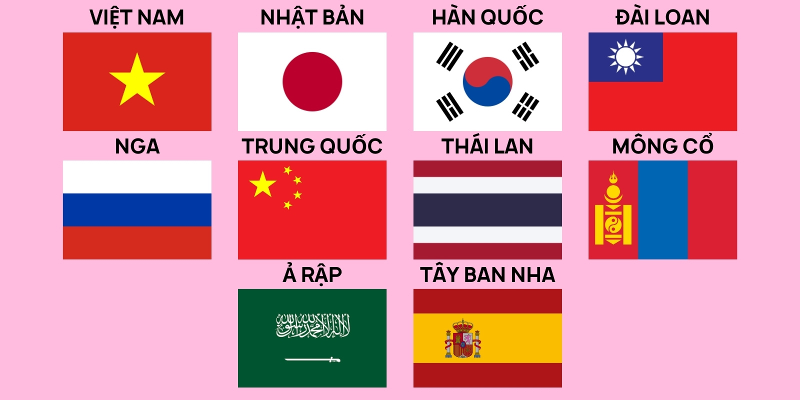 Hàn Quốc, Nhật Bản, Đài Loan, Việt Nam